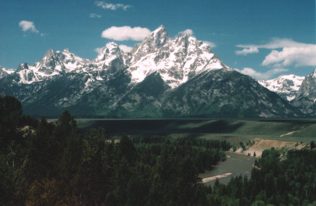 People refer to these as the "Grand Tetons," but they're not. They're the Teton Range. This fella, the big guy in the middle that looks like he's wearing a cardinal's mitre, he's the Grand Teton. The whole naming convention is a little weird, though, like a fraternal organization out of the Flintstones. "Hey, Fred, are you gonna wear that for your induction ceremony as Grand Teton?"